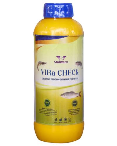 Dissolve required Quantity of ViRa Check in clean water and then spray uniformly throughout the pond or tank bonds (or) Advised by Aquaculture species